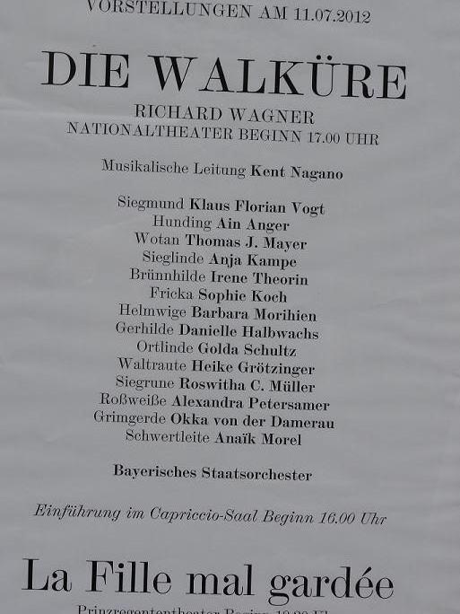 Cast list of "Die Walkuere" in Munich 11 July 2012