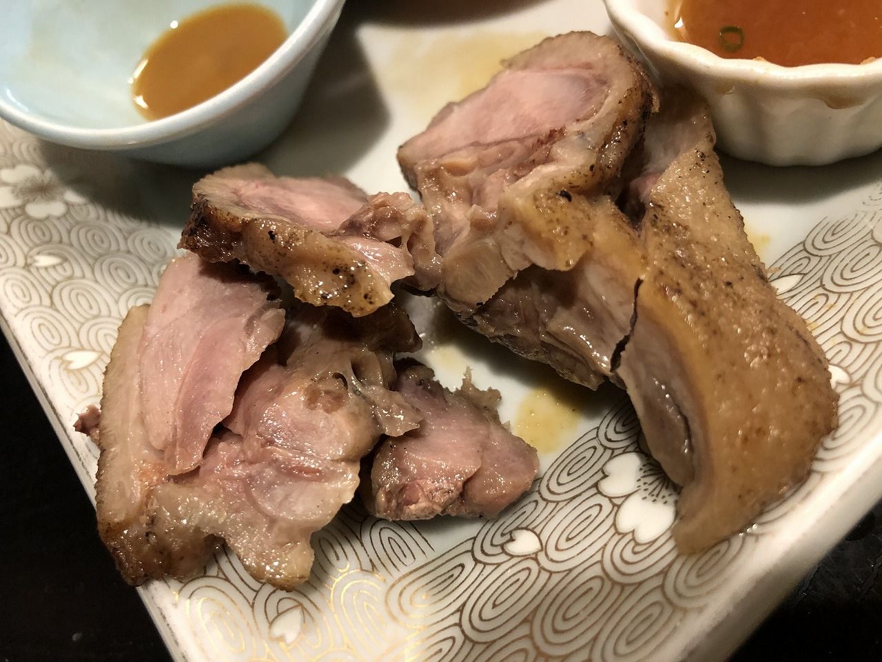 酒を進めるにあたり、おつまみで鶏肉も出してもらいました。