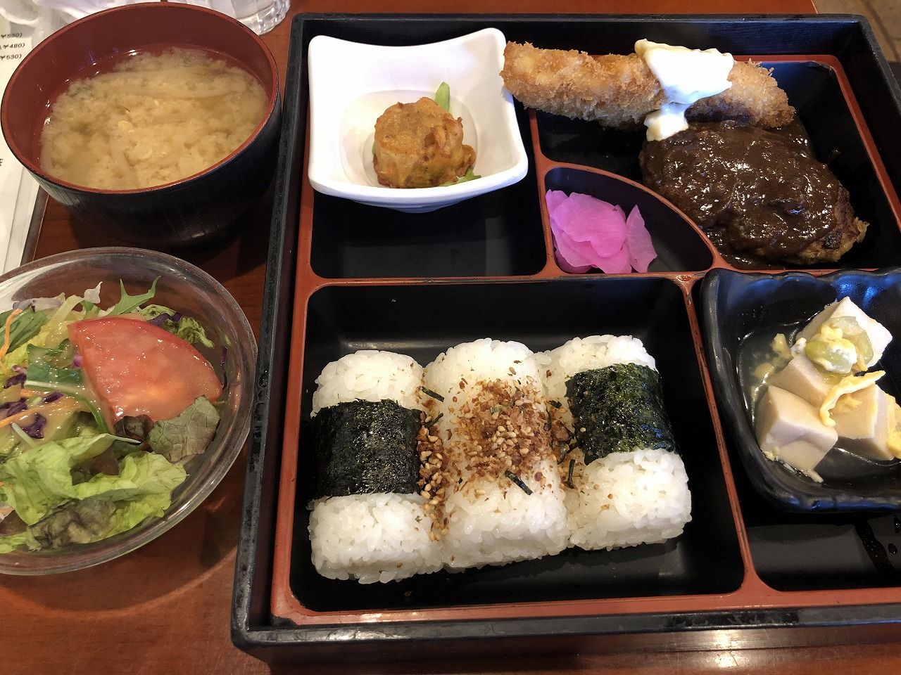 今日の日替わりはハンバーグにエビフライでしたね。