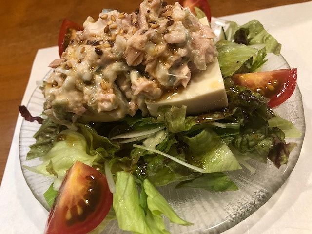 ザーサイを乗っけた、豆腐サラダ!こりゃ美味しい。