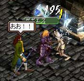 早朝狩りしようと数日目覚ましをかけるも・・・起きれない戦士じぇねです。。この時期は・・・寒いから・・・。。布団から出たくない^^;一昨日、赤鯖でチリWiz対古代ヴァンプの話が上がったので白鯖でちょっと行ってみました。(一応・・・地図3クエを受けてw)相変わらず紙Wizなので^^;B6で死にかけながらも・・・なんとかB8到着。通常狩りされてるWizさんがいらしたので・・・クエをやらせてもらえないか?と、お願いしたら快くOKしてもらいました。早速攻撃開始しますが・・・アタリマセン!!!;;以前、戦士で挑戦した時は意外に命中してたので今回も大丈夫だろうとナメテました^^;(因みに戦士の敏捷190くらい。。 サブWizは101。。)命中率が悪いときの為に、一応敏捷up装備も持っていったのですが・・・装備交換する暇もなく・・・orzmissの目立つ情けない攻撃をしてたので、周囲でmob狩ってたWizさんが、同情からか手伝ってくださいました;;(ほ、本当はタイマンで戦いたかったw でもWizさんありがとうございました^^)命中悪いので当然CPもたまるの遅いです;;ヘイスト掛けなおすのに青POT連打wSSのダメは手伝って頂いたWizさんのもの・・・だと思います。。。(僕が攻撃してるSSはmissしたのしか残ってなかった。。。)また改めてタイマンしたいと思います^^;(クエ品は無事に3体目で出ましたw)先日、ある幼女さんに同行してて・・・ペットのしつけを目撃しました。 ・・・。お尻叩いてます^^;しつけ恐ーw