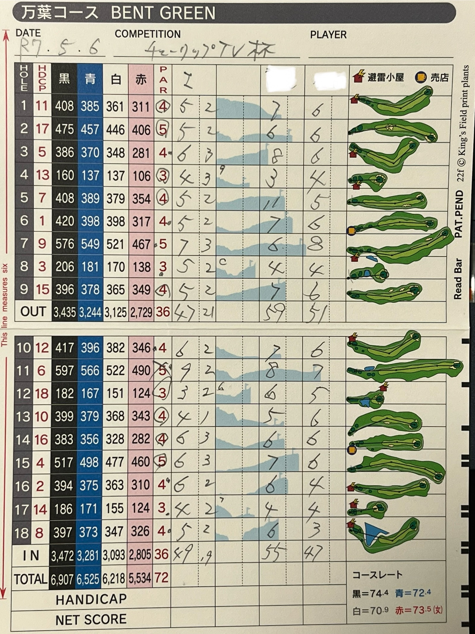 ダボ以上が7ホール。3パットが5回。相変わらず下手ですな。