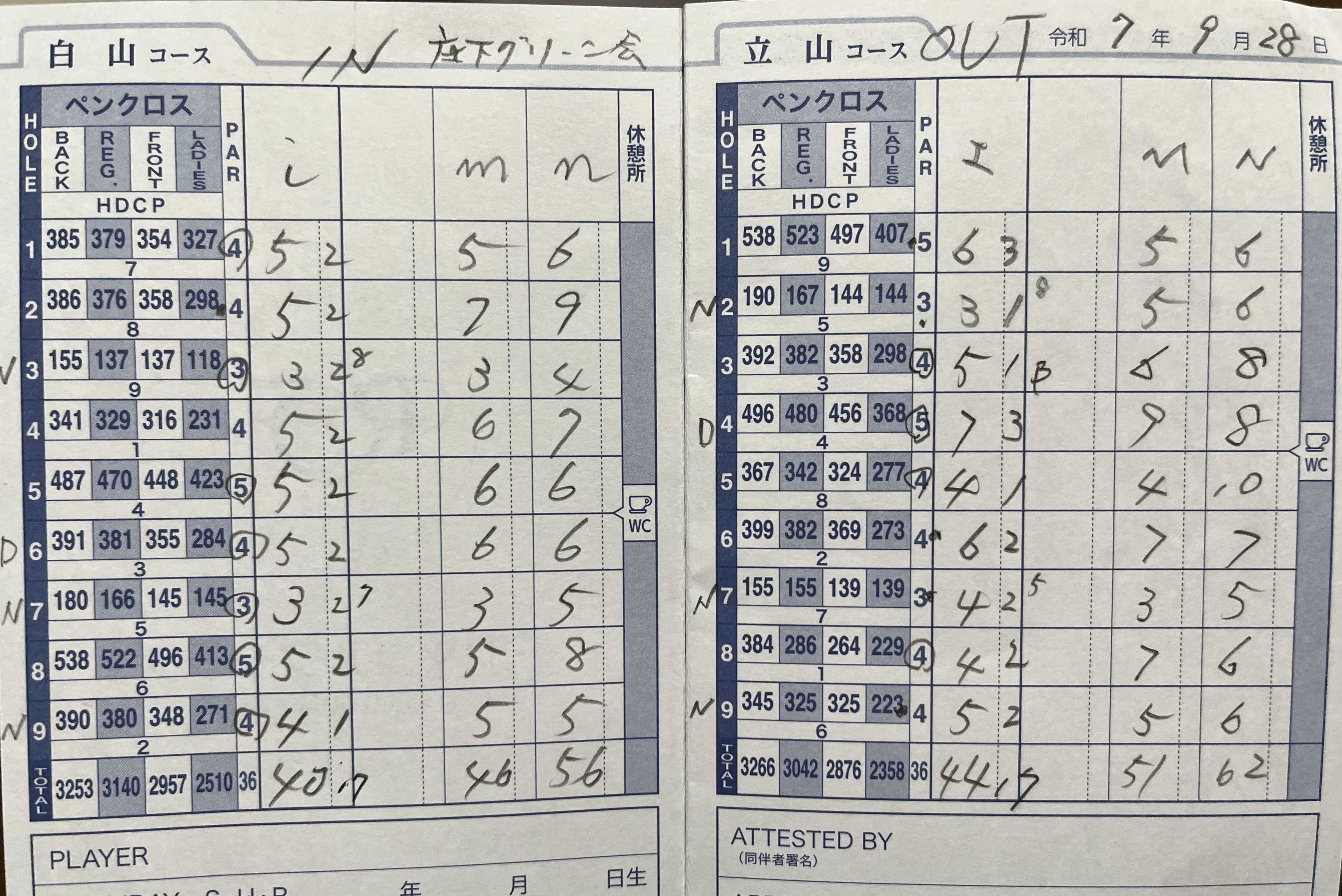 後半はダボなしの上がり3ホールがパー。上出来です。