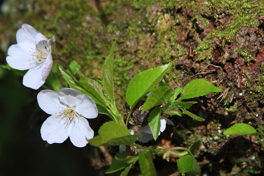 桜の木のひこばえに花が咲いていました。老木ではよく見られることですね。