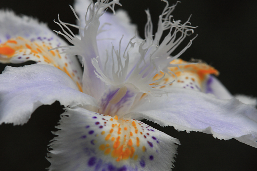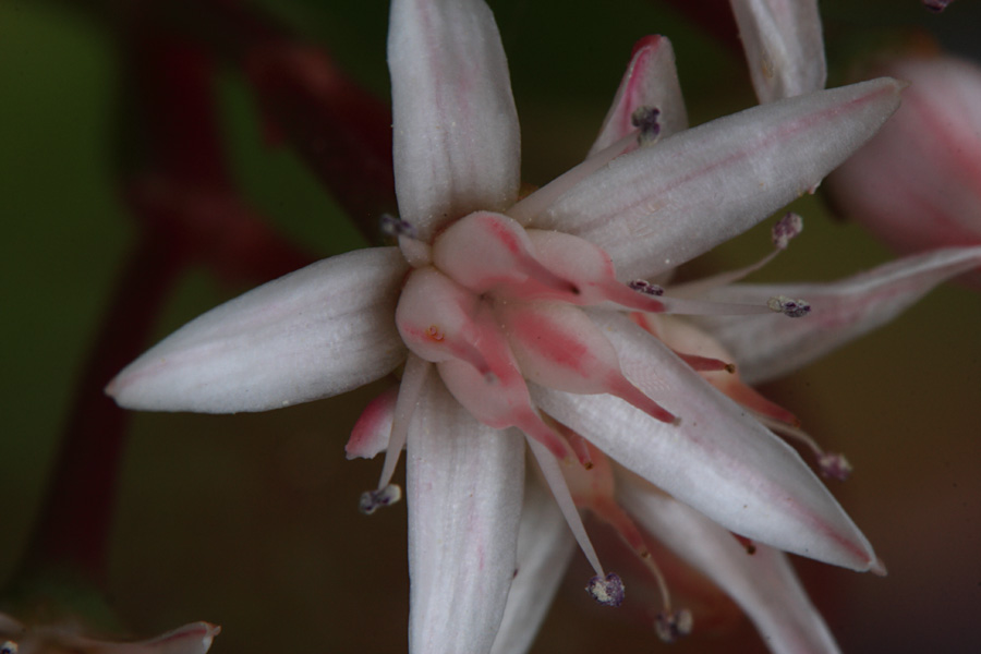 勢いよく突き出しているシベの長さが5mmくらいです,被写体が小さすぎてなかなかピントが合いません。あと一月もしないうちに受粉して,ドラえもんの竹コプターのような形に変わります。