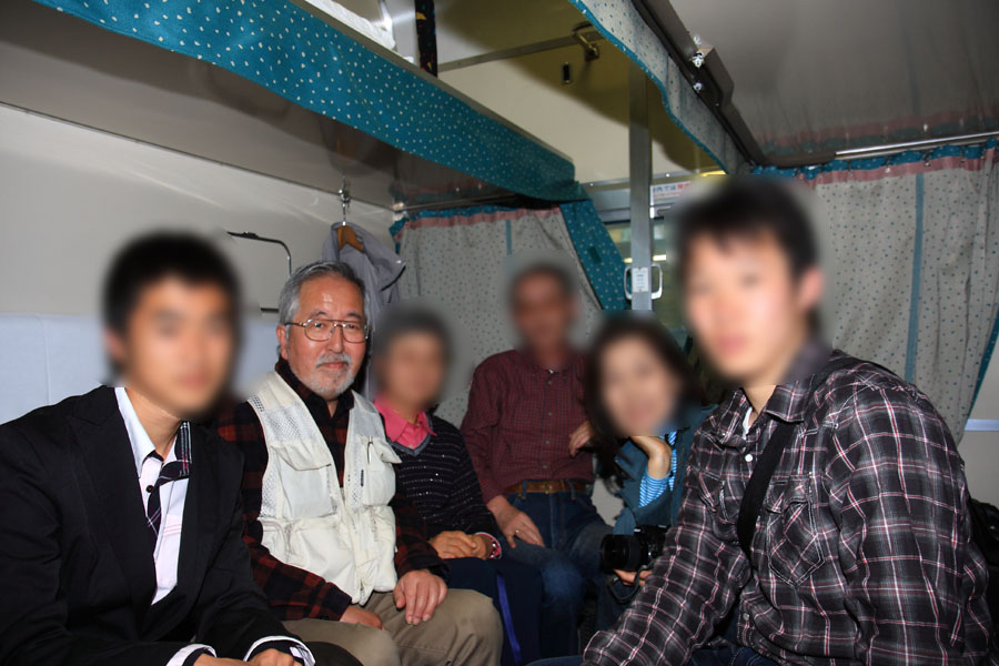やっぱり赤ら顔のどこかのおじさん朝っぱらから飲んでいたわけではないだろうに今回の旅行でであった三人の若い鉄男君たち,すがすがしくて言葉遣いも正しく,礼儀正しい若者だった。メンバーがビールを勧めると「未成年ですから飲めません。」ときっぱり断わるし(あたりまえか),言葉遣いも「ら抜き言葉」や「さ入れ言葉」は使わず,尊敬語と謙譲語を使い分ける若者だった。体も大きいし大学生だろうかと思っていたら,なんと高校1年生だった。両親のことを言うときも「おやじ」と「お袋」または「お父さん」「お母さん」とは言わず,「父は」「母は」と言えるし,人を立てることを知っていた。夜が明けて朝食を済ませ,そのボックスに行くと自分の座席からやってきていたが,私が目に付くとさっと立ち上がり席を譲ってくれて,自分は窓際の固い補助シートに移ってくれた。家庭の躾がうまくいった見本になる若者だった。現代の高校生がここまで気を使ってくれるとは,「今時の若者は・・・」と言えないなと思った。山口U部高校のY君,気持ちの良い旅行させてくれてありがとう。