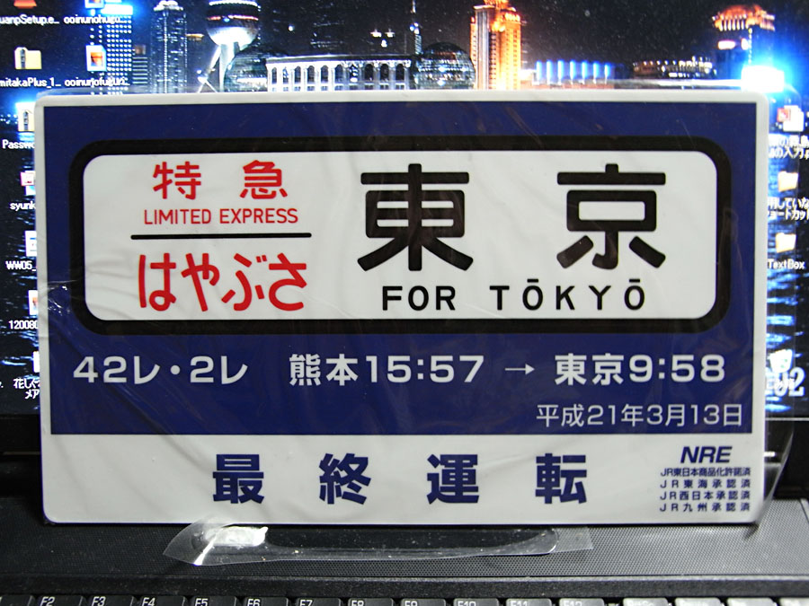 昭和33年10月1日,鹿児島本線の鳥栖駅以南を走る初めての寝台特急列車として誕生したはやぶさは,平成21年3月14日のダイヤ改正に伴って廃止される。東京に行くときははやぶさで行くのが夢だったが,子供のころは東京に行くこともなくこれに乗ることもなかった。初めて東京に行ったのは学校に行くために上京した昭和44年春のことで,そのときは博多まで急行「かいもん」でいき,寝台特急月光1号で新大阪まで行き,ひかりに乗り換えて上京した。帰省のたびに利用するのは新幹線と在来線の特急で,はやぶさにはまったく縁がなかった。鹿児島⇔東京間が,西鹿児島⇔東京間に変更され,九州新幹線開業の前に熊本⇔東京間になって,なおかつ大分からの富士と連結されて運行されるようになり,とうとう廃止の日を迎えた。3月13日発が最後の運行となる。この全く縁がなかったはやぶさのラストランに立ち会うことが出来,乗車できることになった。3年前東京に行く用事があったのでチャンスとばかりに予約して切符を買っていたが,こちらの集中豪雨で洪水に襲われ陸の孤島なって身動きが取れなくなり,諦めたということもあった。こちらを13時43分の新幹線で熊本に向かい,熊本出発15時57分,東京着14日午前10時03分,18時間の最初で最後の乗車が始まろうとしている。