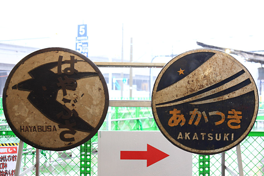 寝台特急はやぶさとあかつきの初期のころのヘッドマーク昨夜地元民放で特急はやぶさの特集番組が放送された。我々にすると「廃止されて残念」くらいの気持ちだが,関わってきた方々には非常に残念な思いだというのがひしひしと伝わってきた。はやぶさに関わった機関助士,食堂車のウェイター,整備士にスポットを当てて構成された番組だったが,放送が終わったときには,目から汗が流れ出てしまった。いつもだったら木曜日のテレビは「渡鬼」しかみないが,昼の勉強会で「はやぶさ」の特集があると教えてもらったので見られた番組だった。横浜駅の見送り