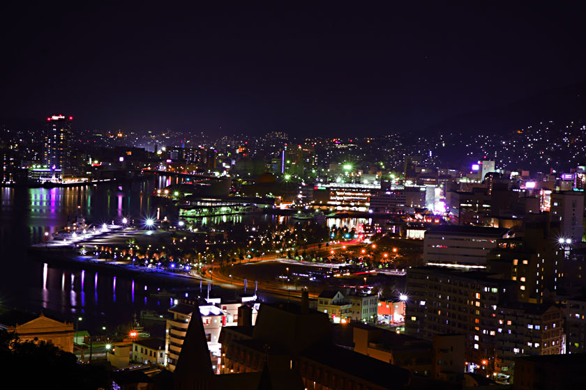 ああああー,長崎はーー今日はーーー晴れぇーだーーった。長崎の夜は紫でもなかった。稲佐山からの夜景ではありません。