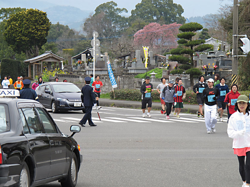 スタートから数キロのところ,フルマラソンのコース。ガンバレ,ガンバレ