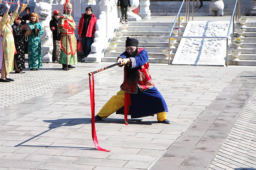 媽祖行列の先頭を行くテッコの踊り。孔子廟の出発式を見ました。