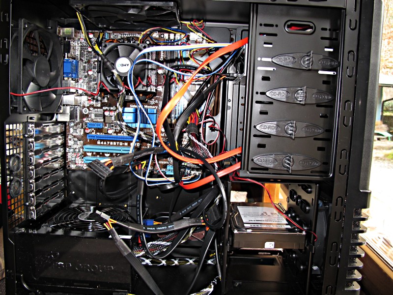ああでもない,こうでもないと,試行錯誤のうえハードの組み込みは終わりました。紙切れ一枚のケースの取説に,『ハードディスクの取り付けは,コネクター部分を奥にして(正面から見て右側)取り付けてください』とは一言も記述がありませんでした。バックパネルも内側から取り付けなければならないものを,力技でそとから押し込みました。あと電源,一応名前が知られているところのものですが,短いケーブルが全くなくてケース内はまるでニョロニョロの大渋滞です。Windows7の64bit版をインストールしたためにメモリーはフルに使えますが,ソフトはこれから探さなければなりません。Xpで使っていたソフトがそのままXpモードでも使えます。