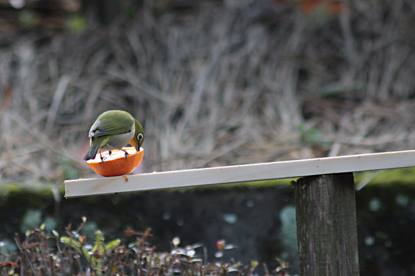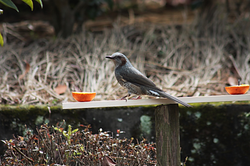 マッチャン食堂の常設テーブルを白木の新しいものに変えました。いただいたミカンの傷み方が激しいため,大盤振る舞いをしなければ腐って鳥さんたちも食べてくれそうにありません。最初のお客さんは暴れん坊のヒヨドリ君で,食べながらウ○コして早速テーブルを汚しました。こいつが姿を現すとメジロさんやシロハラさんは遠慮して近づかなくなります。夕方,画像をアップしようとしたら今度はメンテナンス中のメッセージが表示されました。まったく楽天はどうなってるんだか,無料で使わせてやってるんだから文句を言うなって感じだな。
