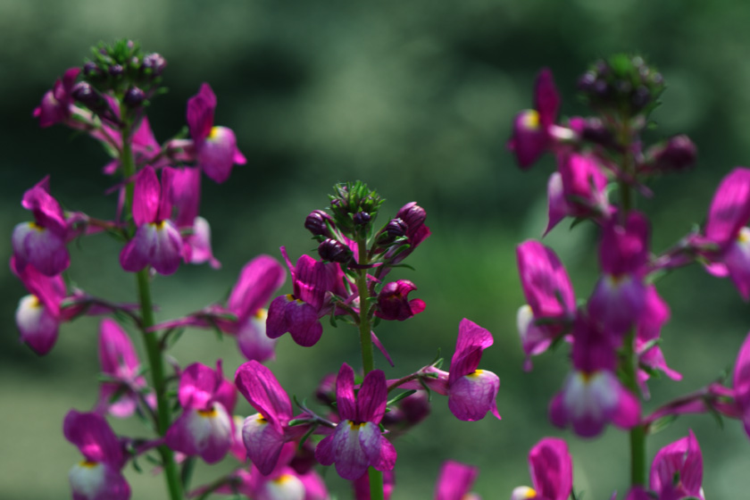 リナリア 別名 ヒメキンギョソウキンギョソウに似ていて小型なのでこの呼び名が付いた。松葉海蘭と同じでゴマノハグサ科ウンラン属の植物。