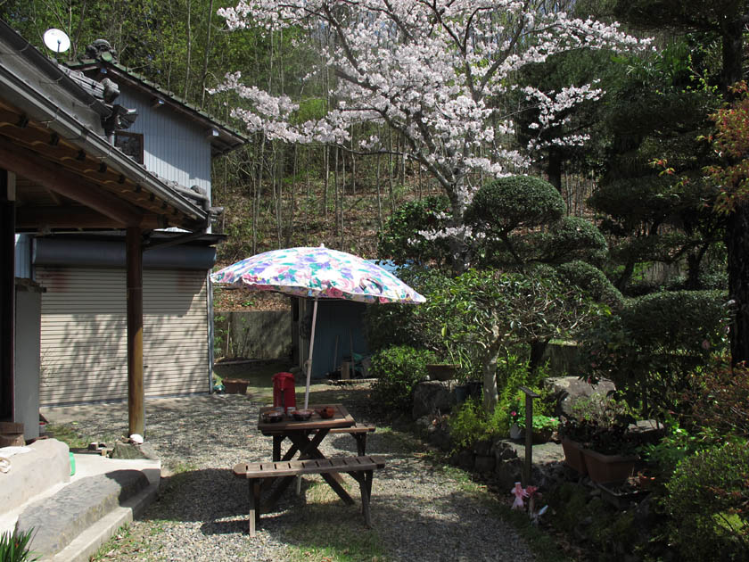 天気も良く気持ちよい日和で,うなぎの寝床の我が家の豪華庭園(?)に,海岸でもないのにビーチパラソルを広げ,スーパーの高級総菜弁当をいただきました。最近は,豪華とか高級などという言葉を使いすぎあるな。ここは大阪河内じゃないんだから気をつけなきゃ。
