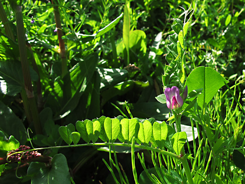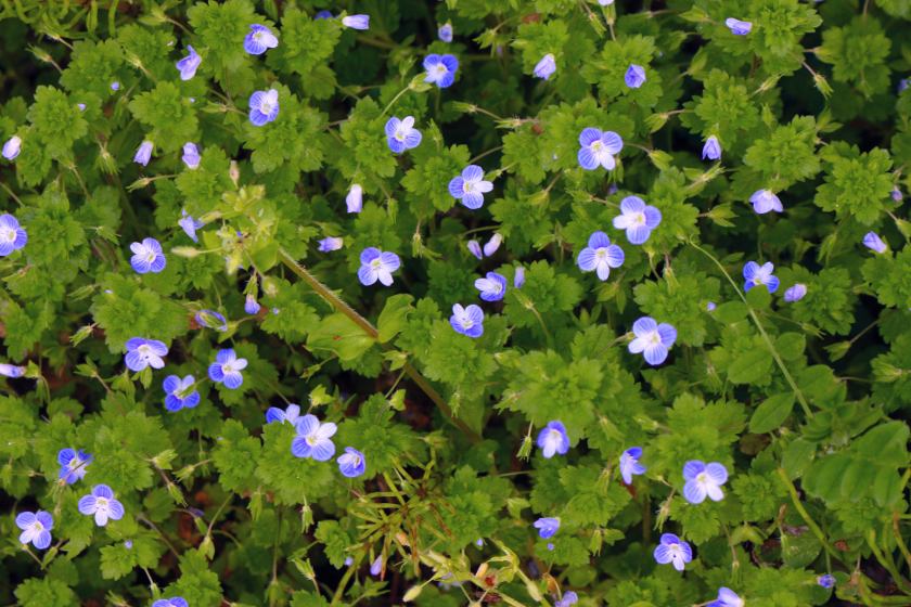種を水に浸ける時期に咲くからこの名がついた。花の直径は数ミリ程度。キュウリグサはまだかな?