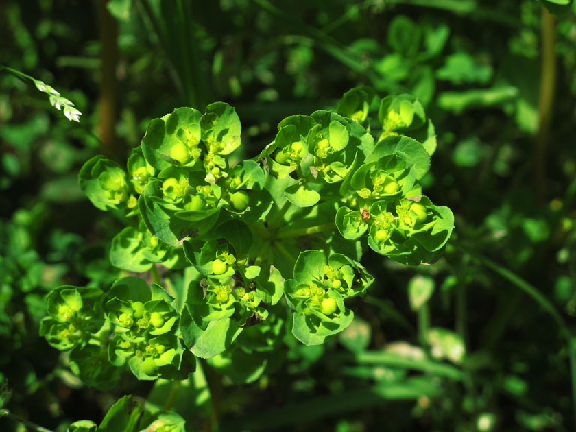 11日の昼の勉強会のときに,あるご婦人が「写真の取り込み方を教えてほしいので,今からちょっと写真を写してきます。」と教室から出て行った。戻って来て会が終わり帰り際に,「珍しい変わった草があったから根っこから抜いてきたけど,先生,名前がわかります?。持って帰って庭に植えようかなと思っています。」と見せてくれたのが,トウダイグサだった。「知ってますよトウダイグサです。黄色のきれいな花が咲きますが毒がありますよ。」と教えたら,「え゛っ!!」と放り投げてしまった。教室からは持って出たが,そのさきどうなったことやら。