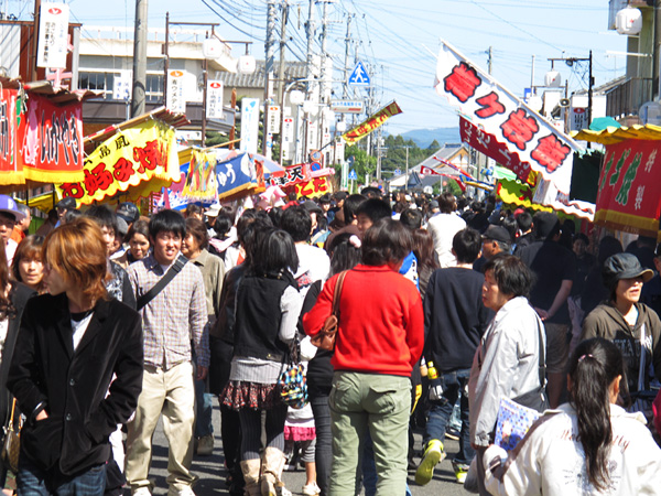 近くの市に行ってきました。毎年彼岸の中日に開かれる市で「中の市(ちゅのいっ)」と呼ばれていますが、知り合いが訪れると蕎麦が振舞われることから「ソバ市」の名で呼ばれることもあります。去年も書いたが加治木の初市、高尾野の中の市、川辺の二日市と鹿児島県の三大市の一つです。市といえば農作業が始まる前の準備として農耕具や竹細工の日用品、苗物などが販売されるのがあたりまえですが、最近は子供相手の露天ばかりです。商工会のイベントとしてソバの早食い競争が行われます。つなぎなしのそば粉100%の手打ちソバが、子供は3人前、大人は4人前がすし桶に入っていて、これで早食い競争です。初めは早食いながらもある程度上品に食べていますが、後は手づかみや丸めてソバ団子で口に押し込む人も出てきます。もうひとつの目的は去年来ていたテキヤのおじさんに写真を渡すことでした。「お兄さん,買わないでもいいから見ていってよ,働いてるとこ写真とってくんない?」 と声をかけられ撮影したうちの一枚ですが、今年は来ていませんでした。