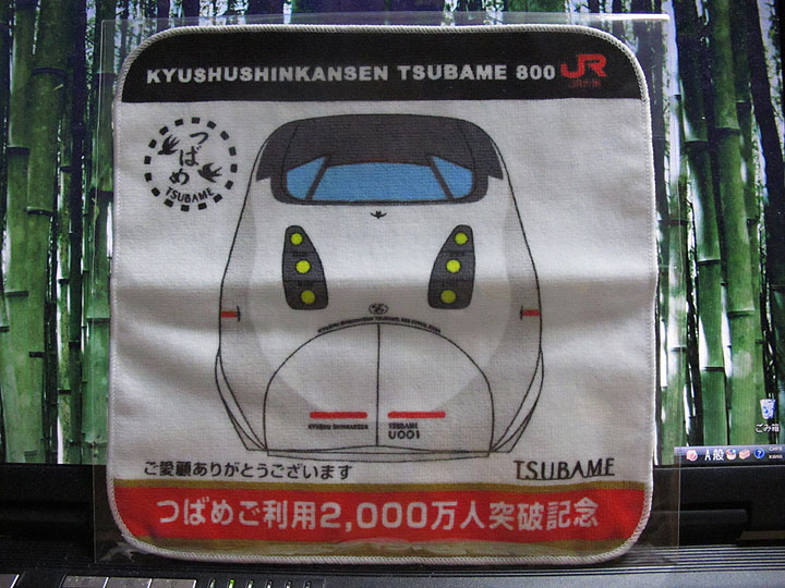 2010年3月20日,九州新幹線の乗車人数が2000万人を突破したと,地元紙に載っていた。記念に配られたのが画像のハンドタオル。我が家の新聞は,ジャイアンツファンでもないのにン十年来あの新聞だ。だから記念品のことも全く知らなかった。やはり地元の情報は地元紙でなければ得られないな。んだもしたん。
