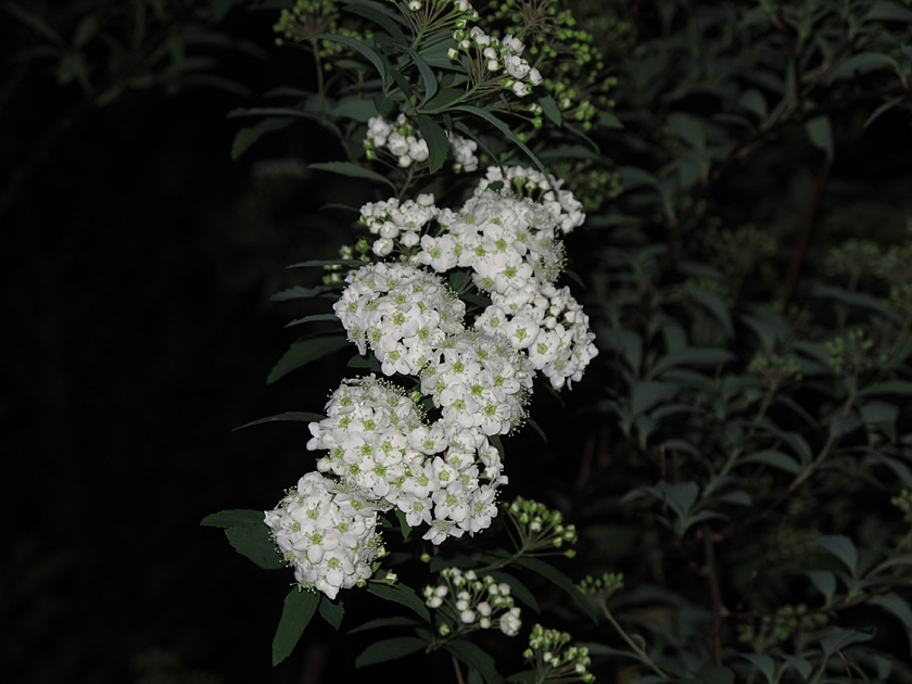 桜や道ばたの小さな草花に目を奪われている間に,我が家の裏庭では,小手毬が花を咲かせていました。明るい時間に撮影すればいいものを,わざわざ暗くなってから撮影しました。