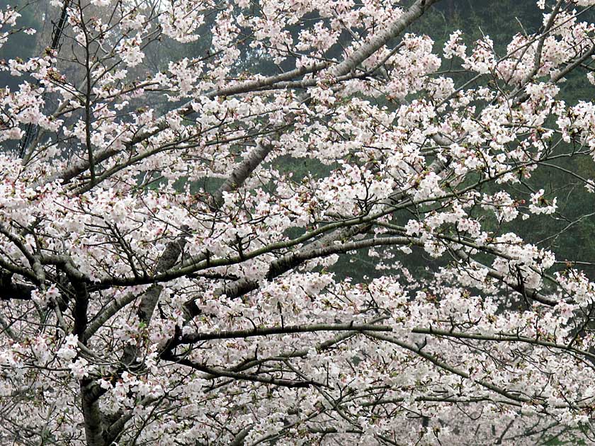 今日は朝早くからお空の上では「ブツブツブツブツ」独り言が聞こえていた。時々、ピカーッと光も。昼過ぎには雨も小康状態になったが、今にも泣き出しそうな気配だ。桜もちらほら緑色の葉っぱが出始めた。憎い花散らしのあめだ。