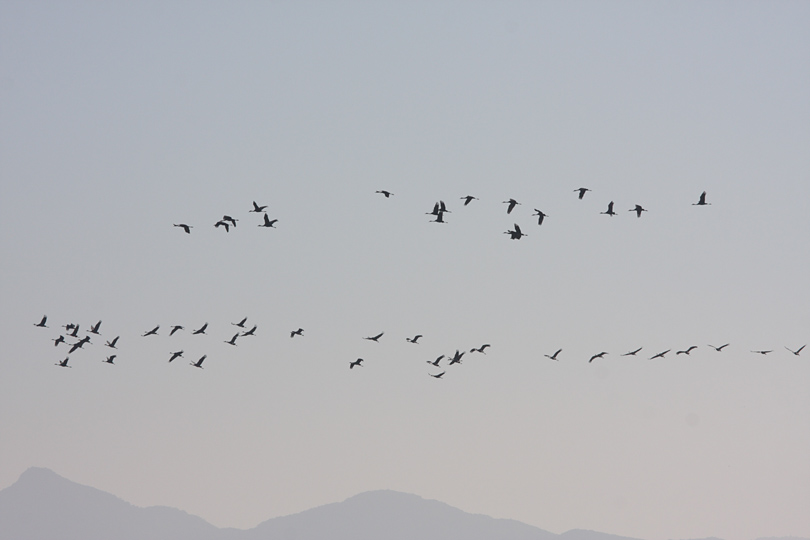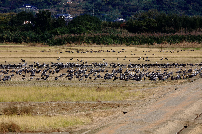 珍しくこの時期につる観察センターに立ち寄った。東京からやってきた知り合いを案内したためだ。やはり 鶴=マンダム丹頂=白いと言うイメージが出来上がっているようで,目の前の田んぼにたくさん降りているにも関わらず,「鶴はどこにいるんですか?」「目の前の田んぼにいるのが鶴」「うっそー,白くない。」白い鶴はマンダム丹頂とソデグロヅルだけと,図を見せながら説明したらやっと納得した様子だった。さて,二階の展望室に上がると,受付にはパソコン教室の教え子ならぬ教えお姉さんが座っていた。いつもなら顔パスで入るのだが(おいおい),今日はお客様連れだったので大金420円を支払った。中に入ると観光課の鶴担当市職員が,手持ちぶさたにしていた。別に意地悪するつもりではなかったが,「森永小学校の子供たちが籾のプレゼントにやって来るのは,今度の木曜日か,それとも金曜日か?と尋ねると,「森永小学校・籾,なんですかそれ?」「毎年宮崎県K町の小学校の子供たちが鶴のため持ってきてくれるでしょうが!!」「わたしは今年担当になったばかりなのでわかりません。」市の職員がこれでは交流はほど遠いことだ。結局,受付にいた教えおねえさんに尋ねたら木曜日の午前中にやってくることがわかった。この時間だったら行けるかもしれないな。