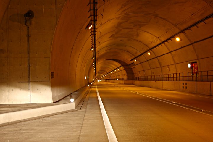 トンネル内の非常用停止帯に止めて手持ち撮影を試みた。シャッター速度 0.5秒 絞り値f4.5(開放)ブレがほとんどないと言うことは,手のブレとカメラブレが打ち消しあったのかな?嬉しくもあり怖くもある。