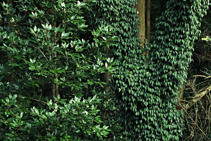 クスノキが見事なくらいきれいに美男葛に覆われていました。
