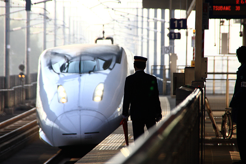 今朝は会議のために三日連続で,新幹線に乗った。新幹線を降りてタクシー乗り場へ。「C町のYまでお願いします。」「わかりました,C町のYですね。」運転手さんは,C町に車を走らせた。近くになってから,「生協の裏の通りに回ってください。」「はいわかりました。」と運転手さんは返事はしたものの,通常右折するところを通り過ぎてしまった。碁盤の目のように区画整理がされているから行けないことはないので,運転手さんに任せておいた。しばらく走って右折した運転手さんが,「あれっ,生協がない。」『生協はまだずっと東側なのに・・・・』「あっ,C営業所とY会社を間違えた。」右折して入った道路には通り抜けが出来ないように杭が立ててあるので,そのままバック走行で抜け出して会社に到着。料金メーターは途中でリセットしてもらったので損はしなかったが,新人運転手さんならいざ知らず年代的にはベテランさんのようだったが,どこに連れて行かれるのか不安になってしまった。九州新幹線では来年の全線開通に向けて新人車掌の実地研修が続けられている。指さし確認も大きな声と大げさと思えるようなアクションで見ていて気持ちがよい。
