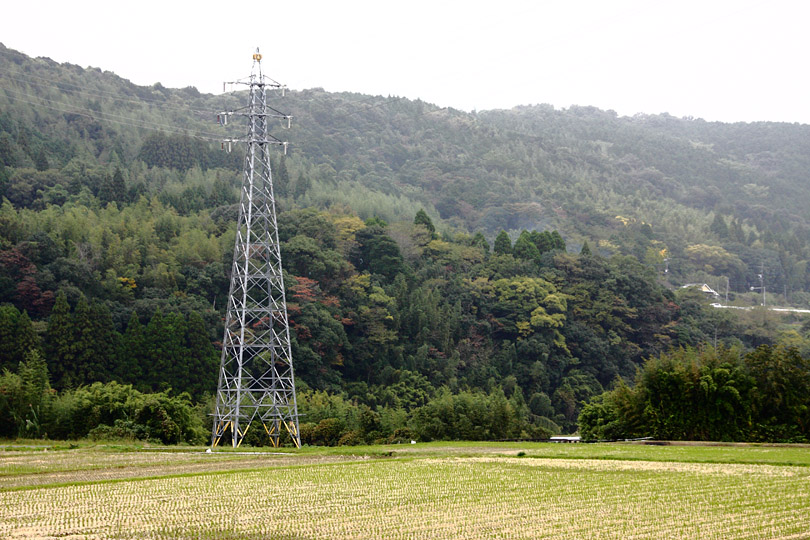 所用で田んぼ中の道路を走った。(念のために行っておくが,あの方とはちがって小用のためにわざわざ走ったのではない。あくまでも所用のため。)田んぼの水は落とされ稲刈りも終わっているので,田んぼはサンダルで入ってもぬかることはない。田んぼの送電線の鉄塔の真下に入り鉄塔を眺めてみた。なるほど幾何学模様がおもしろい。世の中には送電線鉄塔マニアがいると聞くが,違いがわかればおもしろさも湧いてくるだろうと思った。でも真下から撮影していると,高圧電流の電磁波を体に浴びてチン人間になってしまいそうだ。それとも,これ以上珍人間にはなれず正常人間に戻ってしまうかな?