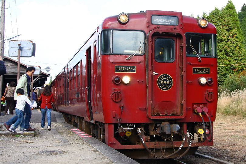 日曜日朝のお勤めを終え駅へ向かった。『ゲキ★ヤス乗り放題きっぷ』を使うためだ。住んでいるところから博多までの往復割引切符が11700円だから,それを考えると土曜日だけで十分元は取っているが,使わなければもったいないような気がしたためだ。どこに行くとも決めていない,北に行けば肥薩線か豊肥線,南に行けば指宿枕崎線,日豊線,肥薩線,吉都線などがある。駅に着くまでの間に決めたことは,『とにかく上りと下り早くやってきた方の電車に乗る』ことだけだった。下りは10時44分着発,上りは不明。駅に着いて時刻表を見ると,上りは10時43分着発だったので,上りに乗ろうと決めた。行く先は,この時点でも未定。列車の中で,肥薩線の川線(八代⇔人吉)区間を乗っていないことを思い出した。車掌に尋ねると,一時間近く待たなければならないが人吉行きの九州横断特急があるという。八代から一時間くらいかかるから,山線(人吉⇔吉松)の接続もあると目論んだ。接続がなかったときには引き返せばいいと,特急を待った。新八代は,九州新幹線と同じホームでこれに接続する特急『リレーつばめ』と乗り換えができる。そのために,在来線特急『リレーつばめ』鹿児島本線から高架になっている乗り換えホームに上っていく。昼間はさほど感動しないが,夜にリレーつばめから新幹線に乗り換えると,町の灯りがだんだん闇の中に沈んで行くようで,まるで銀河鉄道999に乗っているような気分にしてくれる。今回初めて,高架に上がっていくリレーつばめを見ることができた。土曜日の弁当の失敗を教訓として,日曜日は駅弁を買って列車を待った。11時52分九州横断特急1号がやってきた。指定席は満席だが自由席には空きがあり一人でゆったりと座れた。弁当をいただき,JR九州のコーヒー割り引き券をもっていたので高級コーヒーを100円で飲んだ。観光特急だけあって,球磨川の案内などもしてくれる。日射しはまぶしいが快適な川線乗車だった。人吉が近づくと『いさぶろう・しんぺい号』の説明があった。そのなかで「『いさぶろうしんぺい号』は全車指定です」。『ウソッ,JR九州ホームページの時刻表には一部座席指定と表示してあったのに』と思いながら聞いていた。『乗れなければ引き返すまでよ』と思っているうちに12時59分人吉駅に到着。人吉駅は,上りの横断特急に乗る人でごった返していた。とりあえず『いさぶろうしんぺい号』が停車しているホームに向かった。列車に乗り込み客室係のお姉さんに尋ねると,「座席番号がついていない座席にお座りください。」との返事「あいているところないじゃん。」結局,1時間22分立ちっぱなしでした。写真撮って動き回るから,別に席はなくてもいいのだが撮影しないときは座りたかったなぁ。13時15分列車は,吉松に向けて動き出した。13:32分大畑駅到着,ここはループ線の中にスイッチバックがある珍しいところだ。停車してしばらくすると,「上り列車が入ってきます,ご注意ください。」のアナウンスが流れた。『えっ,ここの路線は一編成の列車が行ったり来たりしていたはず,なんで列車が来るの?』と思っていたら,上りのキハ40が入ってきた。休日は観光客が多いので臨時列車が出ているのだろう。この線で行き合いを見られるとはラッキーだ。4,5分停車して矢岳駅に向かって発車した。途中ループ線上のトンネルと交差するあたりで列車はいったん停車して,今まで停まっていた大畑駅を見せてくれる。2002年初めていさぶろう・しんぺい号に乗ったときは乗客は我々親子三人と矢岳駅の名誉駅長の四人だけだった。それが今は観光客一杯で,一日5往復の人吉⇔吉松間だけはドル箱路線に生まれ変わった。25パーミルの急な線路を上りきって14時01分矢岳駅着皆がSL展示棟にD51を見に行く間に,それとは反対側に走っていき,給水塔あとと使われなくなった手水鉢を撮影した。矢岳では8分間停車し次の真幸駅に向けて出発した。この駅は,肥薩線で唯一宮崎県にある駅だ。ここもスイッチバックを使って駅に入る。駅に入ると以前の「静かな山間の駅」という雰囲気は全くなく人が溢れかえっていた。駅の広場を使って地域のイベントが行われていると言うことだったが,列車が到着すると,ひょうきんな『ひょっとこ踊り』が披露された。ひょっとしたら与論の泡さんが紛れ込んで踊っているかもしれない。幸福の鐘も健在だった。上のひょっとこ踊りを撮影したらデジカメのバッテリーが切れてしまった。真幸駅を出て吉松駅でいさぶろう・しんぺい号の乗車は終わり,はやとの風に乗り換え,肥薩線を南下し鹿児島中央駅まで行き九州新幹線に乗り換えて帰宅した。この日で熊本県のJR路線も完全制覇した。