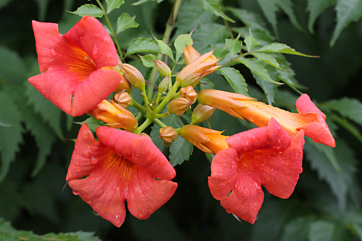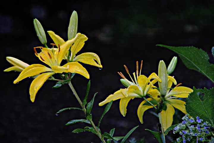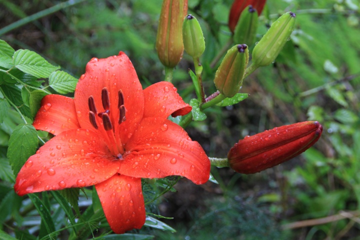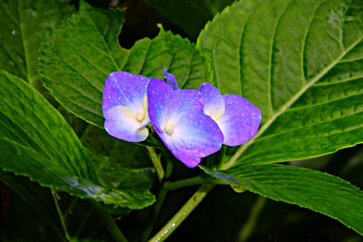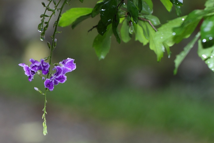 ここ一〇日間で例年の六月分の雨量が降ったという。5年前の七月集中豪雨の時は三日間強い雨が降り続けたが,今年は強くなったり弱くなったりを繰り返しながら降り続けている。こんな時は軒下で撮影できる雫ばかりだ。霧吹きを使う必要も無い。