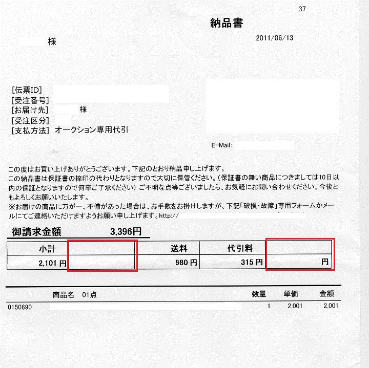 久しぶりにネットオークションに参加した。伝票画像の金額で落札し,代金+送料+代引手数料で3296円を準備して外出した。帰宅すると,元飛脚便輸送会社の兄ちゃんから「100円足りないと言われたから,100円追加して受け取ったよ。」と母親が言った。開梱して伝票見ると,確かに請求金額は3396円になっていた。商品明細の欄は2001円だが,小計の欄では2101円になって100円増えている。翌日メールで問い合わせをしてみたら,『増えた100円は消費税です。オークションの画面に消費税は別途頂きますと記載があります。伝票に税額を記載するところがないので,小計の欄に5%上乗せした金額を載せてあります』という返事をもらった。そう言われりゃ税額5%だから100円だ,しかし記載する欄がないからといきなり小計の金額増えると不審に思ってしまうわな。明細には空欄が二カ所もあるからここを使うとか,小計(税込み)とシステムを書き換えられないのかねぇ。小計(税込み)の文字に書き換えるのが一番手っ取り早いのだが・・・・。現役の頃は,他人様が作ったプログラムだったがソースさえあれば,これくらいパパパッと書き換えてコンパイルしてたけどなぁ。