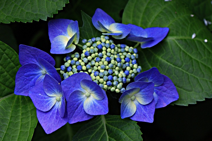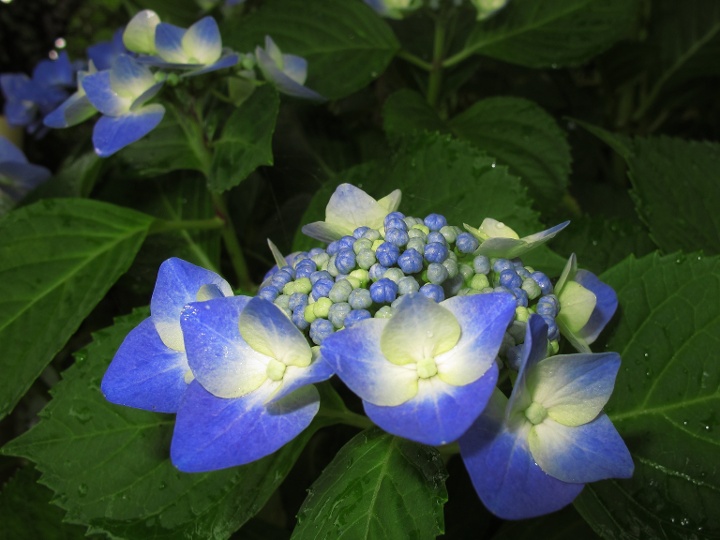 大好きなブルーのガクアジサイは昨年は全く花をつけなかったが,今年はやっと二固まりほど開いた。喜んでいたら,撮影する前に姉が切り落として墓に持って行ってしまった。これは近くのお寺に咲いていた花。