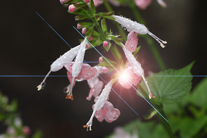 夕方,ほんの2,3分太陽が顔を覗かせ雫がきらりと光りました。画像は,イメージです。