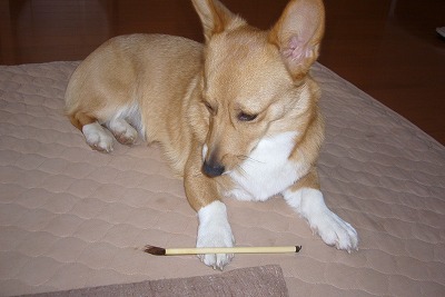 ぽっかぽっか~気持ちのいい1日でしたね~今日は 珍しく予定が無く 久々の充電日ですポーとして ちょっと昼寝して 冬ソナの再放送見ながら もどかしさにイライラし・・・・そんな こんなで あっという間に1日が終わろうと していますさて リビングに何気に・・・子供が片付け忘れたと言った方が正解かも小筆が ポロリ・・・それを 見つめる シュガー・・・・ これは 一体 何????? 何故か 上手に手の上に乗せてます!決して やらせでは ございません ふむふむ・・咥えてみよう!!! こんな感じで いいかしら??? パソコンをカチャカチャして ふと 見れば・・・・ 見事 ボロボロ・・・・・ 4日前に 買ったばかりなのにトホホ・・・最近 あんまり破壊しなくなったから 油断してたわ~小筆殿 短い生涯を 終える・・・・子供には 自分がちゃんと片付けてないから こーいう事になるんだよ!!!!と きつく 叱っておこうシュガーが小筆を 咥えた時に 私が奪っていたら・・・なんて事は 思わないでおこう