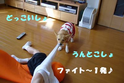 こにゃんちわ~2日間 偏頭痛でダウンしてた私です もしかして 更年期?? さてさて 以前テレビで 介助犬 ムサシ の番組をしてましたが その話を子供にしたところシュガーも介助犬になれるよう 特訓じゃー・・・・と意気込む次男では その特訓の様子をどうぞ お~~~ちゃんと服を脱がそうとしております・・・って ただ単に 袖口を引っ張ってるだけなんですがしかし 次男は・・・ よ~し よ~し お利口だね シュガーも介助犬になれるな!!今日の特訓はここまで!! ・・って なぜか 満足しちゃってるし 今回着てる服は 抜け毛防止にと つなぎ服を買ってみましたシュガー 撮影会始めるよ~~ 可愛く 首 傾げてね~ お~~バッチリ バッチリ かばええ~~ 萌え~~~じゃー今度は 後ろ姿~ この姿 なんだか 笑える・・・・ ぷぷぷぷー え? 何がおかしいの?? どんな姿なの?? どれだけ服で 体を覆っても 抜け毛は部屋中 舞い散る・・・まだまだ 抜け毛のピークは去らないシュガーであります さてさて 最後になりましたが 前回の続きで・・・あまり 期待はしないで下さいね長男が お助けマンになってた頃 次男は・・・・牛乳を飲んでまして 突然 ゴッホ グゥエ 想像出来るかとは思いますが・・ お母ちゃん 見て!見て! ○※◇△おまけに・・・ これって ブログのネタになるじゃろ?? 早く 写真撮って も~~~何言ってるん ・・・と言いながらも ちゃっかり写真を撮り ネタにした母次男の話を 期待をされてた方 こんなんで ごめんなさいね~ではでは またね~