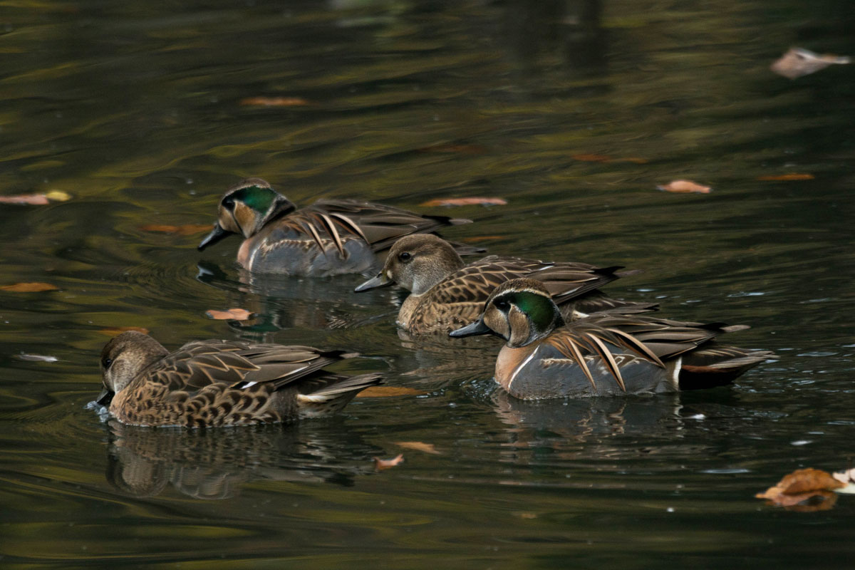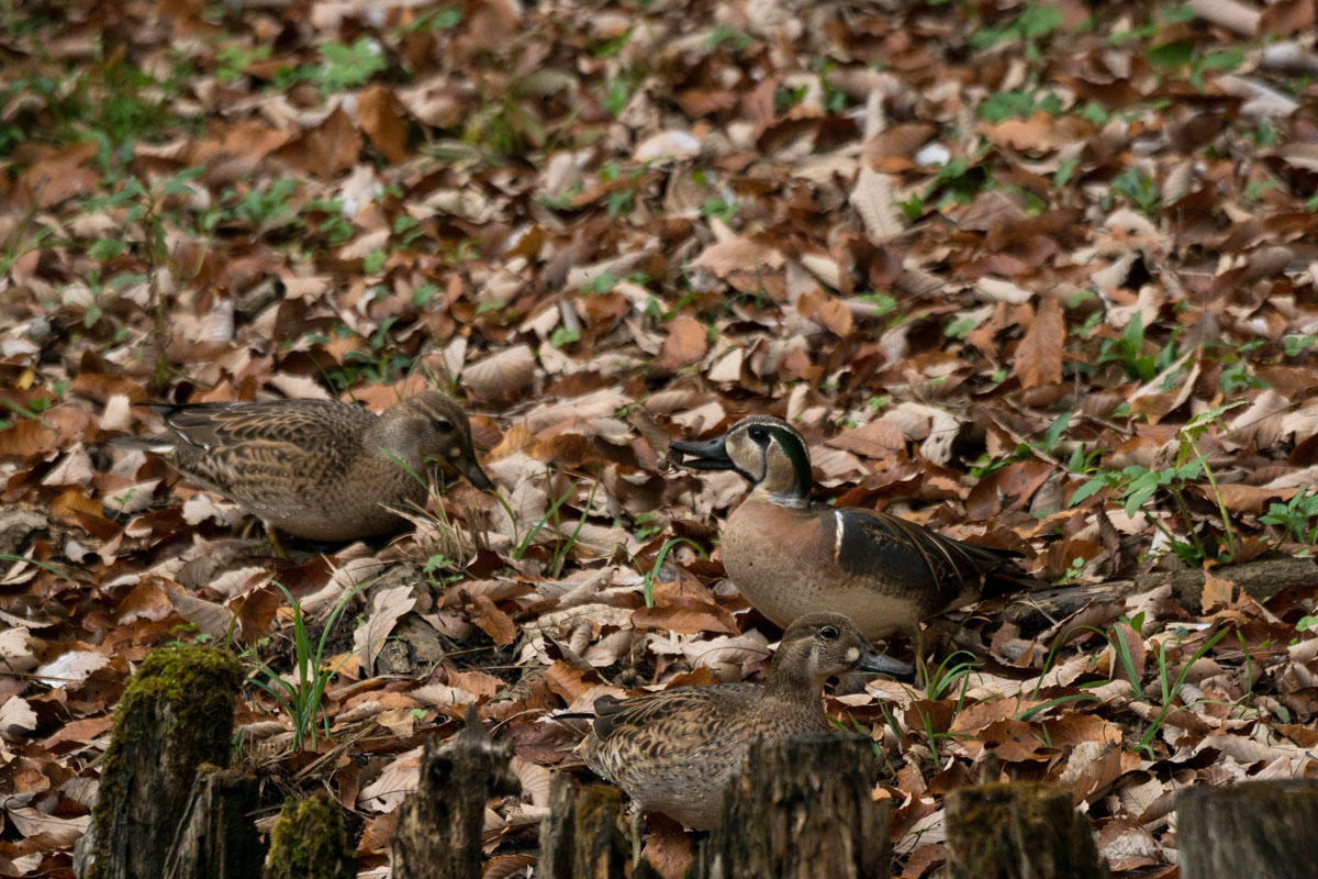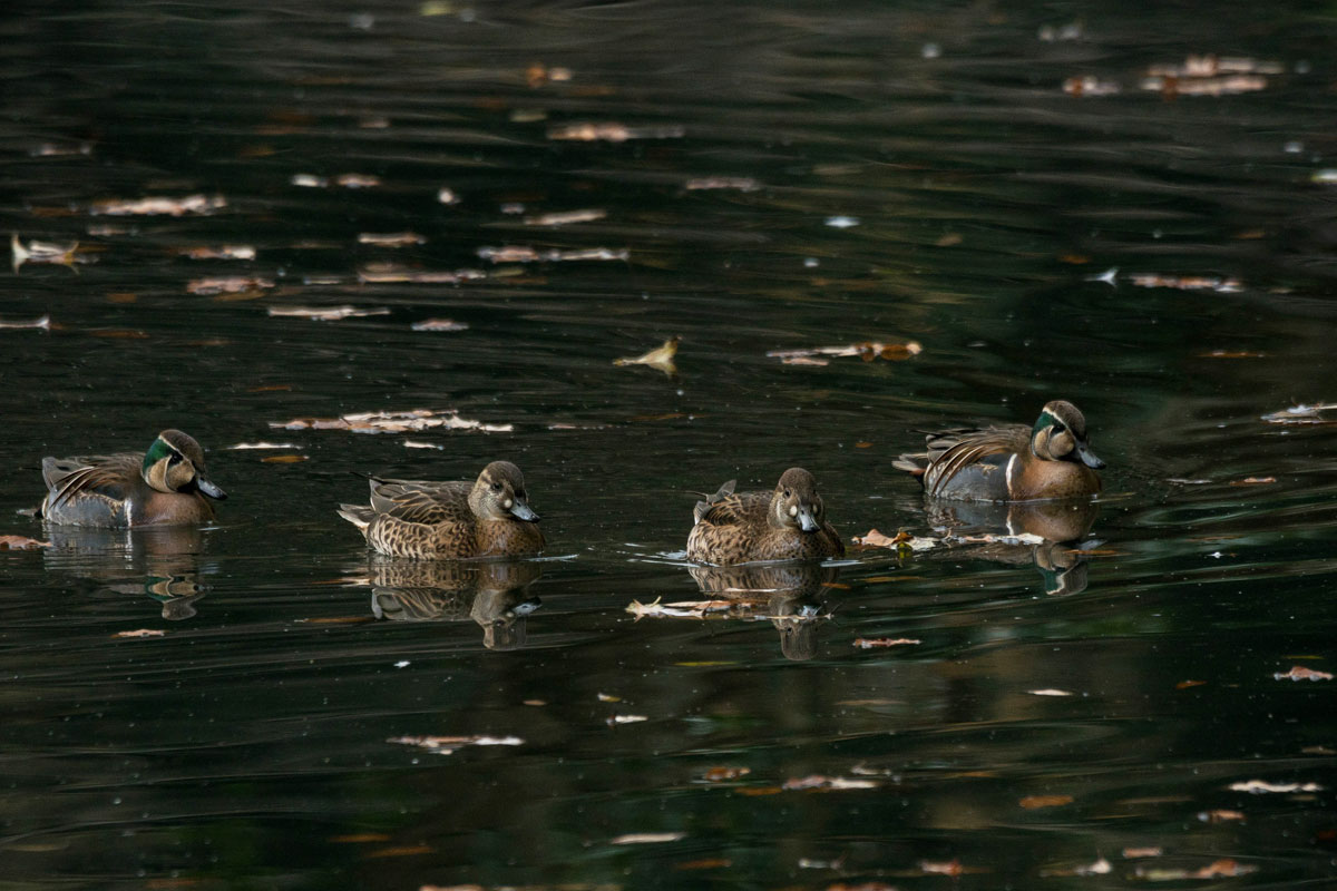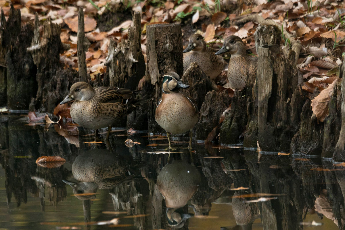 着くと同時にトモエガモのオス2羽とメス3羽が