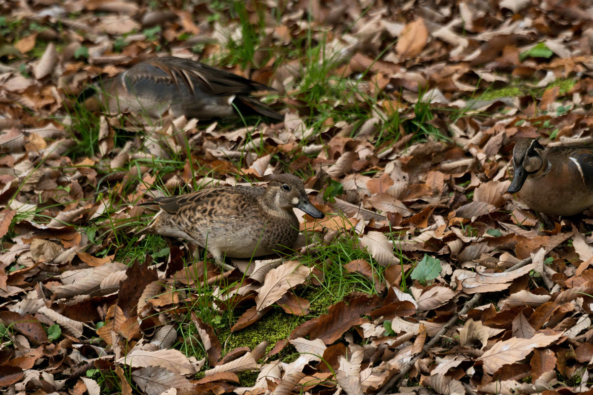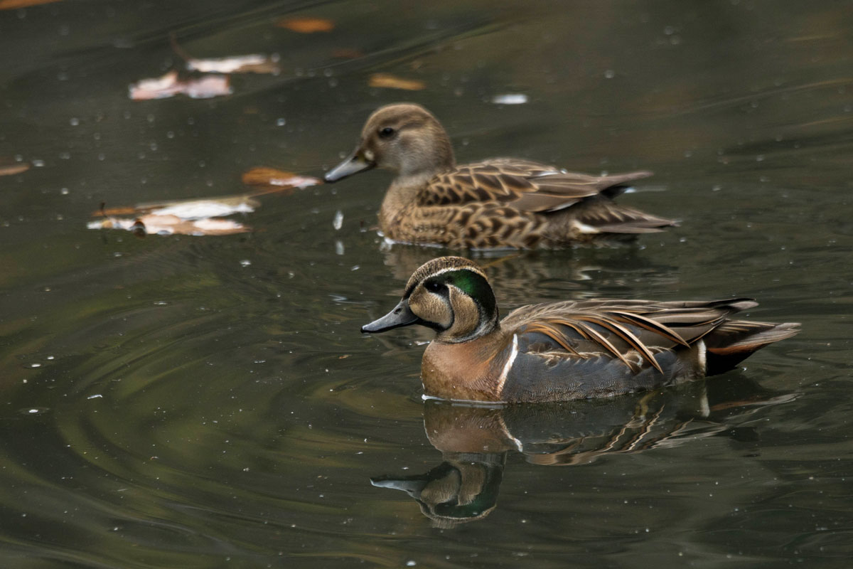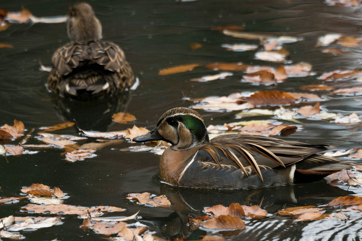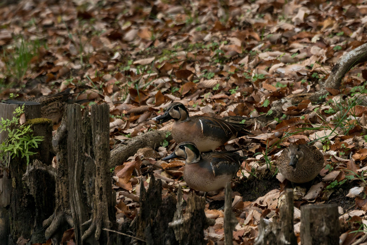着くと同時にトモエガモのオス2羽とメス3羽が