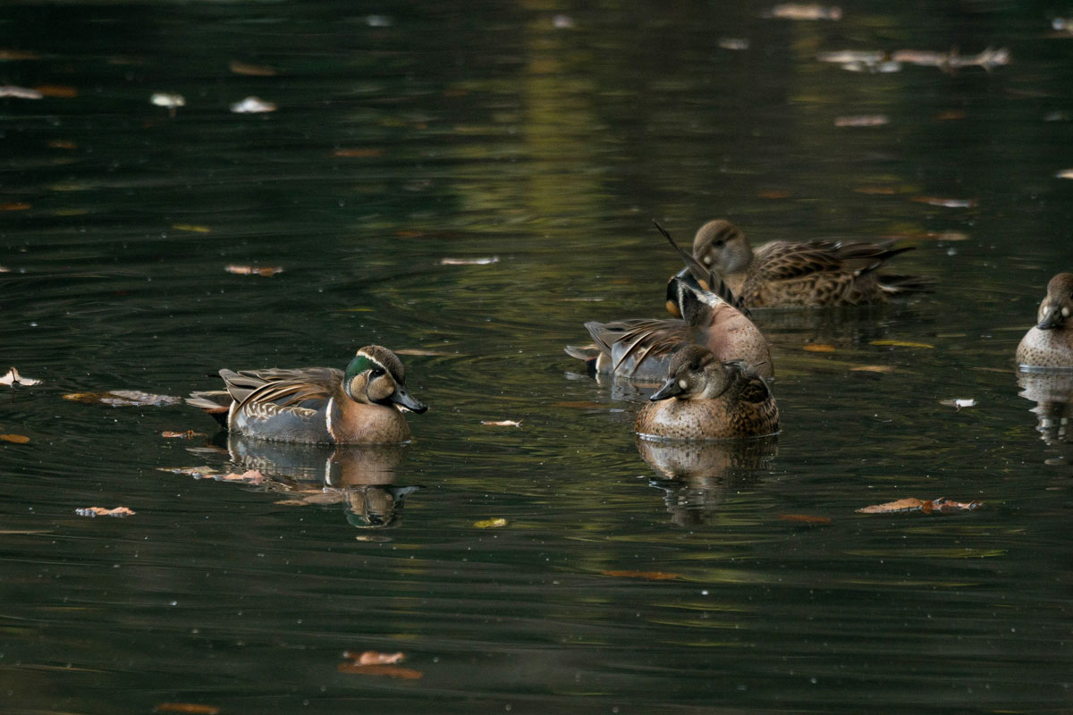 着くと同時にトモエガモのオス2羽とメス3羽が