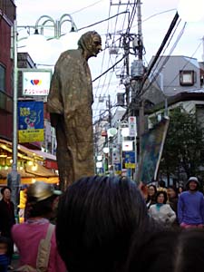 昨日、今日と地元太子堂のお祭りでした。この地区の祭りは三軒茶屋の中でももっとも規模の大きいもので、神輿があちこちで行き交い、参道に沿ってズラリと露店が立ち並びます。能の催しなどもあったりして、いつもは人気のない八幡神社の境内も賑やかでした。で、祭りといえば、そうです、「金魚すくい」。昨年と同じ露店で子供たちがとってきましたよ。こんなに↓。大小入り乱れて6匹。今年の特徴は、小さい個体がとにかく小さいこと。体調2センチあるかないかのメダカのような個体が2匹、3センチ程度の痩せぎすのものが2匹。それから、琉金(尾っぽがヒラヒラの丸っこい金魚)が2匹混じってます。泳ぎが下手な琉金と泳ぎが達者な和金は一緒にいれないのがセオリーですので、順調に育つようなら、いずれ水槽を分けなければならなそうです。昨年の4匹は買ってきた時点でどれも元気で、まさに生命力があふれている感じでしたが、今回は正直、落伍者なく育て上げる自信がありません。とりあえず今は隔離水槽で塩水浴させています(トリートメントといいます)が、この期間中に何匹か落ちそうな予感がします。
