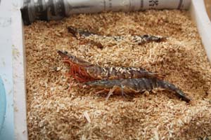 とりあえず、昨日は午前中に年賀状を書き終えまして、午後は玄関周りの掃除や買出し、夕刻から不調続きだった書斎のPCの再インストールにとりかかりました。かなり時間がかかるだろうなと覚悟はしていましたが、案の定、昨晩中には終わらず、今日も設定作業続行中です。工場出荷状態まで戻してしまうと、購入してから今までにインストールしたウインドウズアップデートからしてすべてやりなおさなければならないわけで(ウインドウズ関連のアップデートファイルだけで72個ありました)、さらにはプリンタドライバ、デジカメのドライバ、インターネット環境の再設定、Firefox、iTunes、Dreamweaver、Photoshopなどのインストールなどなど、以前の状態に戻すまではもう少しかかりそうです。もっとも、ずっとPCの前に座りっぱなしというわけでもなく、インストールの合間に書斎の片付けをしたり、今朝届いた金魚水槽のセッティングを始めたりしています。そんなところに届いたお歳暮がコレ↓。こんなもの頂いたの初めてです。発泡スチロールの箱を開けると、一面おがくずが敷き詰められており、掘り返すと、活きたエビたちが出てきます。とりあえず洗面器に移そうとすると飛び跳ねるものもいて、この手の生き物が苦手なカミサンと下の子はパニックになっていました。(^^;本当は生のまま刺身醤油かなにかでいただくのがオツなんでしょうけど、動いている姿を見て、家族一同すっかり気後れしてしまったので、我が家では無難に焼いていただくことにしました。楽天で検査してみますと、結構売ってるんですね。今度実家にも送ってやろうかと。