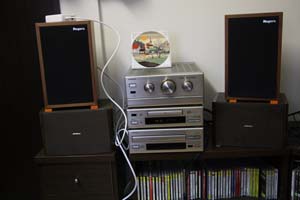 3畳の書斎用のオーディオです。今年になって、にわかにクラシック鑑賞がマイブームとなり、長らく部屋のオブジェと化していたスピーカー「Rogers Studio3」をもっといい音で鳴らしたいと思うようになりました。といいましても、もともと3畳の書斎の話ですし、財政逼迫の折でもあり、やれることは限られてきます。ここまでやってきたこととしては、、、~スピーカーケーブルを交換。~スピーカーがグラグラしないように、置き場所を調整、位置決め。~インシュレーターを設置(といってもこどもの積み木だったりします。)~「AirMacExpress」を購入して、PCのiTunesから直接聴けるようにする。 (スピーカーの上に置いてある白い物体です。)といったところ。エアマックは音質というよりは、利便性の改善がメインでしたが、予想以上にいい音出してくれます。ケーブルは正直どうだかよくわからないのですが、スピーカーの位置決めに関しては、狭小な部屋でもあり、少し動かすだけでずいぶん音が変わるものだなと実感しました。今回、アップル純正でエアマックエキスプレス用のコネクティングキットが出ているということでしたので、そちらを購入してみました。■Apple AirMac Express Stereo Connection Kit with Monster Cables モンスターケーブル製のアンプへの接続ケーブルと、デジタル出力用に光ケーブル、それにアースつきの延長電源ケーブルがセットになっています。代えてみると、音の芯が太くなったような気がしますが、気がするだけという気もします。(笑)ちなみに、AirMac Expressで聴く場合は、内臓のDAコンバーターを使わず、デジタル出力して、デジタルアンプやDACなどに接続すると、オーディオマニアをもうならせるような音になるとか。そう聞くと、安いデジタルアンプなど買ってみたくなるのですが、キリがないので、まあこれはいずれ金策がついたら、ということにしましょう。■KENWOOD(ケンウッド) レシーバー R-K1000-N RK1000N ↑安いですけど、これなんか評判いいんですよね~。プアオーディオのコンセプトにふさわしいのではないかと。