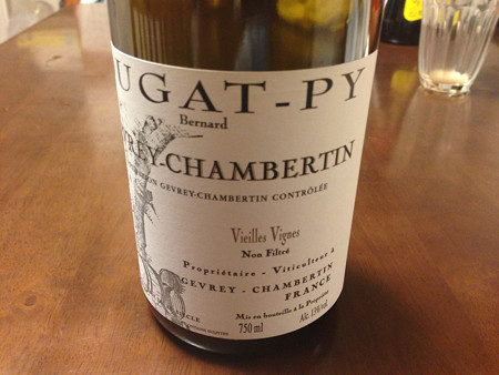 1994年まではACジュヴレ・シャンベルタンを名乗る事が出来たが、法改正によりACブルゴーニュになったというキュベです。そういうこともあってか、ACブルといいながらも、早開けするとやたら無愛想なこともある銘柄という印象があります。しかし、このボトルについては、07年ということで適度にやわらかくなっていてイイ感じでした。赤い果実やカシス、オレンジの皮、紅茶、スパイスなど、ほんのり熟成の入った心地よい香りはいかにもオーソドックスなブルらしいもの。味わいは07年ということで薄いかと思いきや、エキス分も充実していて、必要にして十分な凝縮感。なんといってもACブルのレベルを超えた複雑さがあるのがいいです。これで2K台半ばならお買い得ではないでしょうか。私もさっそく1本追加購入しました。他のビンテージも試してみたいですね。ただ、ひとつだけ懸念があるとすれば、ボトルの底のほうで獣臭が目立ち始めたことです。ひょっとしてボトル差ロット差で馬小屋系ボトルにあたる可能性があるかもしれませんね。★★★★