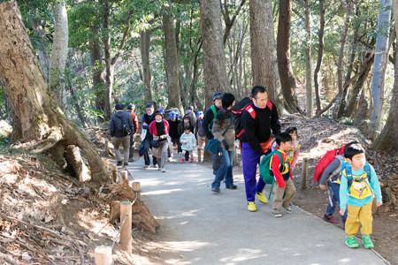 12月30日、31日とそれぞれ例によって朝晩「武蔵小杉」まで子供の送迎があったので、日中自宅に帰らずに鎌倉を散策することにしました。30日に回ったのは「天園ハイキングコース」。関東周辺の山歩き本やハイキングガイドには必ず載っている有名なコースです。高低差こそないものの、思っていたよりずっと本格的なハイキングコースでした。出発は北鎌倉駅。この日は快晴で穏やかな天候でした。先日行ったばかりの円覚寺と名月院はパスして建長寺をめざします。臨済宗五山随一。「建長、円覚、古寺の~♪」で始まる鎌倉の歌もありましたね。紅葉のシーズンが終わり、人もまばらです。三門(山門)。銅板葺きの二重門(2階建て)で、関東大震災で倒壊し、再建される。初層には仁王像などを置かず、門扉も壁もない吹き放しとしている。上層には宝冠釈迦如来像や銅造の五百羅漢像などを安置する(Wikipediaより)「鎌倉三名鐘」のひとつである「梵鐘」何ゆえふくろうなんですかね?禅寺でお地蔵様が本尊というのはめずらしいですが、もともと、建長寺が建てられた場所は処刑場で、処刑された人々を供養するお地蔵様を本尊とするお寺があったことと関係があるようです。細部の装飾が見事な唐門は重要文化財。仏殿と同じく、芝の徳川秀忠夫人崇源院霊屋から移築したもの。関東大震災以来の大修理が2011年5月に終了し、移築当時の姿が再現されたとのこと。ハイキングコースの入り口は建長寺の奥にあります。つまりハイキングするためには拝観料(300円)が必要になるわけですが、それだけの価値は十分あります。いきなり長い階段が続いたあと、天狗たちが迎えてくれます。ここはまだ建長寺境内です。半僧坊は境内のもっとも奥、山の中腹にある、建長寺の鎮守です。ここから山道に入ります。
