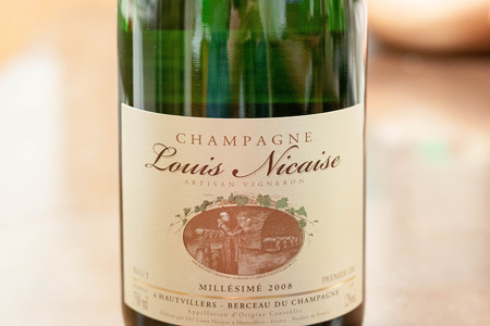 シャンパーニュの聖地として多くの観光客が訪れるオーヴィレ村にルイ・ニケーズは拠点を構えます。醸造学校の同級生だったロールとクレモン夫婦。ルイ・ニケーズの4代目であるロールは学校卒業後に実家に戻り父親の元でシャンパーニュ造りをはじめます。クレモンはジャック・セロスで栽培・醸造を担当した後に、グラン・クリュ・マイィの協同組合でデゴルジュマンの責任者として活躍。2012年よりルイ・ニケーズに加わり、妻ロールと共に4代目としてシャンパーニュを造る様になりました。近年シャンパーニュ界において若手優良生産者の台頭が目覚ましく、クレモンもその中の1人でラファエル・ベレッシュとオーレリアン・ラエルトとは醸造学校で5年間共に学んだ大親友。各自のスタイルは異なるがシャンパーニュの新しい時代を築くべく、切磋琢磨してシャンパーニュ造りに取り組んでいます。最近「セロスの弟子」とか「セロスの薫陶を受けた」といった言葉をよく目にするような…。どこぞの誰と醸造学校の同級生だったとか、わたし的には「芸能人のお宅拝見」と同じぐらいどうでもいいことなんですけどね。…と冒頭からいきなり毒づいてしまいましたが、某所のセールで本数あわせに買ったこのアイテム、ミレジムといいつつ、値段は通常のブリュット並みでした。大して期待もせずに新年会の谷間の平日に開けてみました。柑橘、シトラス、ミネラル、アカシアなどの清々とした香りに軽く焼いたトーストのニュアンス。味わいはみずみずしい果実味と繊細な泡や酸とのバランスが良好。苦味を感じますが、それもよいアクセントになっています。ストッパーをして残した翌々日は味わいにコッテリ感が出てきて、そこそこ美味しく飲めました。期待値が高くなかったこともあろうかと思いますが、なかなかどうして、悪くないシャンパーニュでした。08年というビンテージの恩恵もあるかもしれませんね。積極的にリピートしたいかと問われれば微妙なところなれど、どこかでまた出会うことがあればそれはそれで歓迎、そんな一本でした。★★★★楽天でルイ・ニケーズを検索する★
