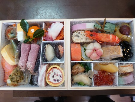 婦人画報社の「1人前×2セットおせち(1.8万円)」を2セット。2×2=4人前の1人用お節を注文してみました。そこそこの出費でしたが、コロナ禍の中、家族で1つのお重から食べるのもいかがなものかという家人の意見が採用されました(ちなみに我が家は鍋料理も1人用鍋でそれぞれ食べています。)まあどこにも行かないことだし、試しによいかなと。写真が1人前です。これが4つあって、家族がそれぞれのお重から食しているのは、ちょっと奇妙な光景です。肝心の味はというと、見た目ゴージャス。品数も多いし、とても手のこんだ造りです。ただ、、練り物系、巻きもの系のどれを食べてもなんだか同じような味がします。味わいのレンジが狭いとでもいうのでしょうか。元来おせちは保存食なので、仕方ない部分はありますが。それとこれも冷凍おせちに共通する感じですが、後味にナチュラルでない「硬い」感覚が残る気がします。この手の冷凍おせちって、数年前に私も仕事で関わっていましたが、要はすべて特定の大手下請けがベースを作っていて、有名シェフやタレントがちょこっとそれを監修するだけ。なので、どこで買っても 似たような味になるのです。特に冷凍のものは。ぶっちゃけコンビニで買ってもたいして違いはありません(逆に言えば、コンビニのものもそこそこ美味しい)。今年はなりゆきでこうなりましたが、来年は、町場の魚屋などで売られている手作りのお節を買いたいとあらためて思いました。