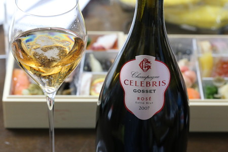 今年の正月は実家に行かなかったので、元旦、二日と自宅で過ごしました。でもって、おせちにグダグダと文句を垂れつつ、開けたシャンパーニュがこちらです。ゴッセ・セレブリスのロゼ。セレブリスは何年もの間、うきうきさんの福袋に入っていたこともあり、結構な本数がまだ我が家にあるのですが、ロゼはこの1本だけです。オレンジがかった色調で、サーモンピンクというよりは麦わら的な色合いです。気泡は細かく、勢いそのものはおとなしめです。香りはチェリーやライチ、アセロラなどの爽やかなもの。飲んでみると、見た目ほど熟成した感じはなくて、しなやかで快活な酸とみずみずしい果実とのまとまりが秀逸。飲み進むうちにマロン的なコッテリとしたフレーバーも出てきて、ふくよかな味わいになりました。福袋銘柄というイメージが強いセレブリスですが(私だけ?)、あらためて飲んでみると悪くないですね。★★★★