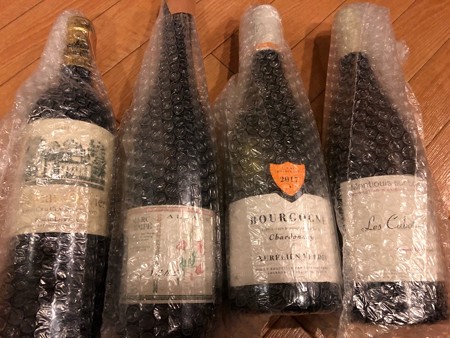 河野酒店さんの1万円「オーダーメイド福袋」。「辛口白ワイン3〜4本で、品種、国問わず。アルコール度13.5度以下」でお願いしたところ、届いたのがこちらです。レ・カボティヌ(ルドヴィック・シャンソン)2017リクヴィル・アンヌ(マルク・テンペ)2017ブルゴーニュ・ブラン2017(オレリアン・ヴェルデ)Ch.オリヴィエ2004国は問わずとしましたが、結果的には4本ともフランス産でした。それにしても04Ch.オリヴィエとは・・。なんとまあ、こう来たか、というような変化球。ビーンボールと言っても過言でないかもしれません。価格はオリヴィエが3.6K、他は3K程度なので、トータル約13K、売価費1.3倍といったところでしょうか。それよりもなによりもこの福袋の価値は、ひとえに04Ch.オリヴィエにかかっています。普通なら、多少なりとも期待が高まるところかもしれません。が、しかし。。私自身、同じ銘柄を2016年に飲んでいますが、↓こんな感想でした(購入したのは別の店。)https://plaza.rakuten.co.jp/szwine/diary/201609170000/う〜む。仮に04オリヴィエが前回のボトルように死んでいた場合、残り3本で9千円。実質売価割れの損な買い物だったということにとなってしまいます。フツーにあまり知らていない新世界のボトルでも入れてもらえれば、それでよかったんですけどねぇ。河野酒店さん、ちょっと攻め過ぎです。まあ、しばらく寝かせた後、過度な期待をせずに飲んでみることにしましょう。