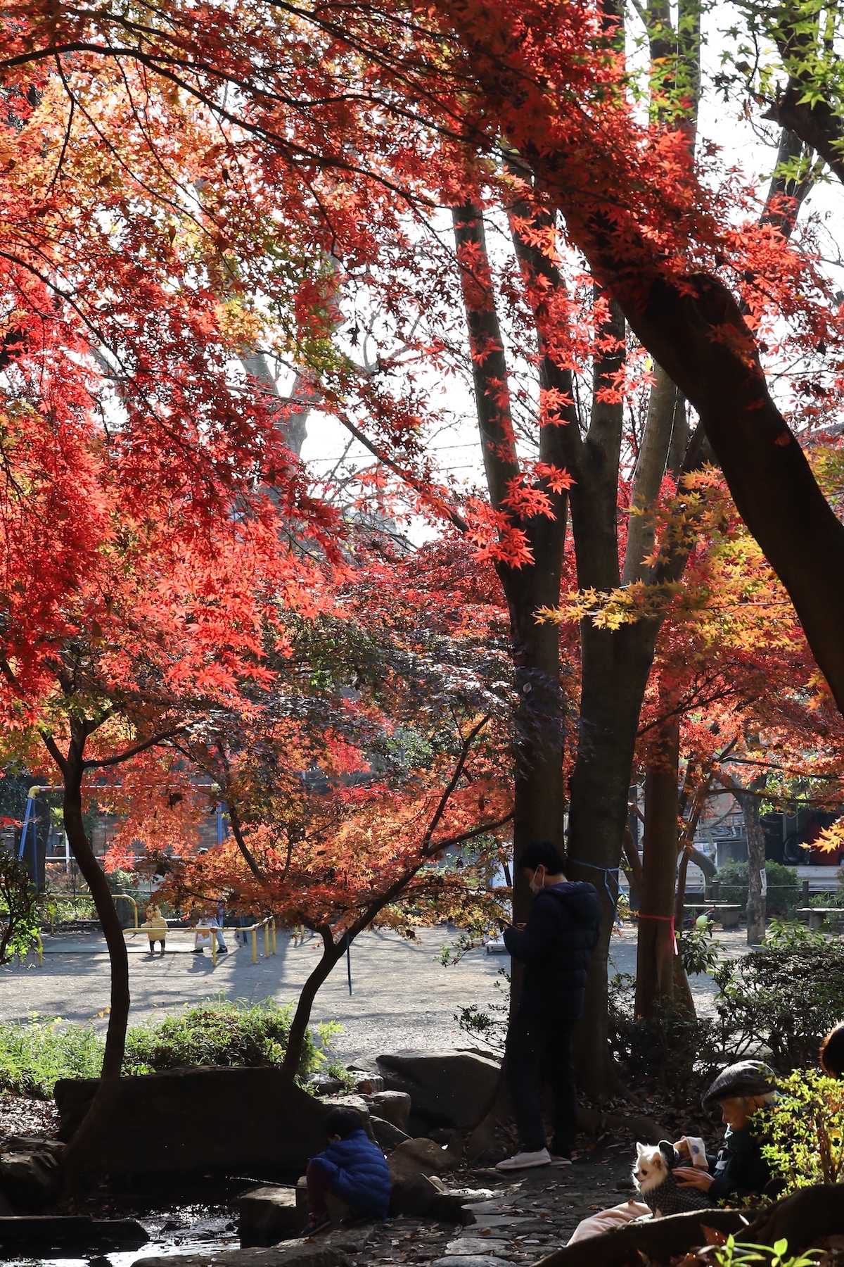 11月27日に訪れ時には、まだ少し早い気配がした岡本民家園周辺の楓でしたが、2週間後に行ったら、ピークを少し過ぎていました。ここの見ごろは12月の初旬ぐらいだったようです。